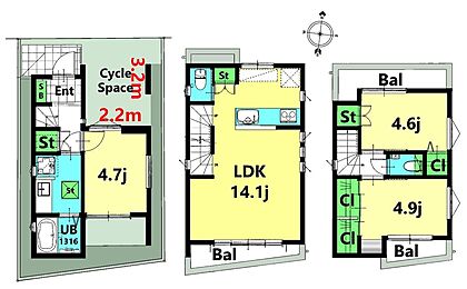 | 間取り | 3LDK | 構造及び階数 | 木造 3階建て |