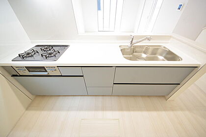 キッチン上部には、スッキリとしたスリム型レンジフードが標準装備されております。