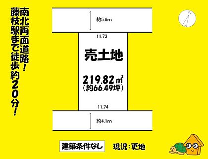 | 土地面積/坪(坪単価) | 219.82m2(登記簿)/66.61坪(34.90万円) | 代表的な接道 | 一方 公道 北 5.6m、南 4.1m ※詳細は備考欄をご確認ください |