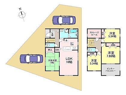 洋室・5.34帖。家族構成に合わせて様々な用途でお使いいただけるお部屋です。