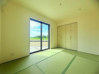 和室6帖。リビングに隣接し開放的にお使いいただけます。しっとりとした落ち着いた雰囲気の和室です。