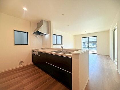 人気の対面式カウンターキッチン。ご家族やお客様と会話を楽しみながらお料理ができます。リビングで遊ぶお子様にも目が届き安心です。