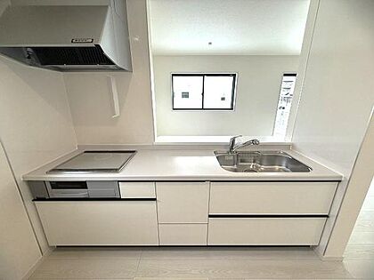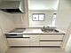 人気の対面式カウンターキッチン。ご家族やお客様と会話を楽しみながらお料理ができます。リビングで遊ぶお子様にも目が届き安心です。