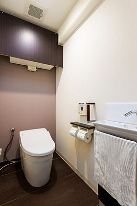 ※販売対象に家具・調度品は含まれません。温水洗浄便座付きのトイレ。来客時にも重宝する手洗いカウンターが設けられています。