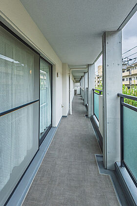 バルコニーはワイドスパン。手すり壁は透明性のある仕様のため、陽光を取り込みやすく開放感もあります。【バルコニー】