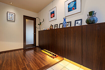 ※販売対象に家具・調度品は含まれません。幅広の下足入れが備わり、季節毎の履物を収納可能。間接照明が足元を照らしてくれます。