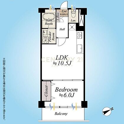 間取図/10階部分南東向1LDK、内装フルリノベーションにより室内設備一新!