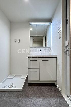 洗面化粧台/新規交換済、三面鏡収納に加え下部収納もあるので嵩張る小物類もすっきり収納が出来ます。