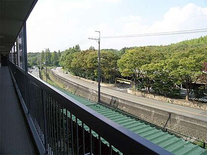 共用廊下からは服部緑地の緑がきれいです。北大阪急行線「緑地公園」駅徒歩3分。1978年1月築。総戸数75戸の分譲マンションです。