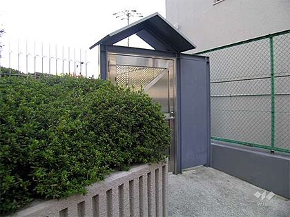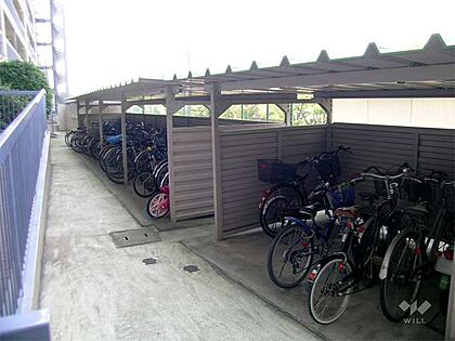 駐輪場。北大阪急行線「緑地公園」駅徒歩3分。1978年1月築。総戸数75戸の分譲マンションです。