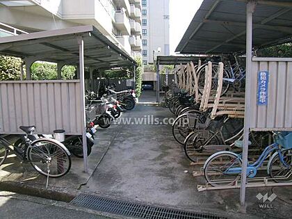 自転車置場。大阪モノレール線「少路」駅徒歩10分。1985年3月築。総戸数72戸の分譲マンションです。