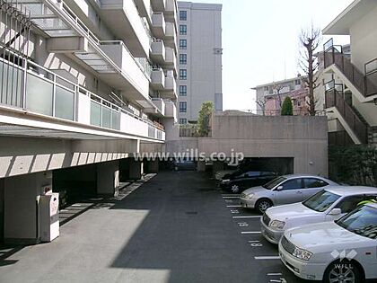 敷地内の駐車場。大阪モノレール線「少路」駅徒歩10分。1985年3月築。総戸数72戸の分譲マンションです。