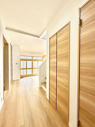 廊下収納。掃除道具や季節の小物を収納することができます。