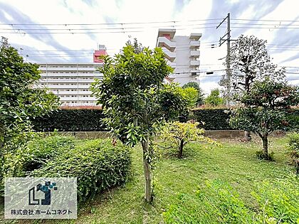 バルコニーからの眺望|敷地内に植栽が施されており、外部からの目線が気になりにくい構造になっております。