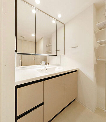 三面鏡の裏は収納になっています。