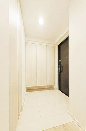 明るい色合いの玄関ホールです。建具の色合いも明るめで調和が取れています。