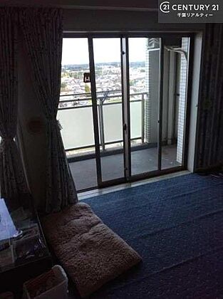 12階に位置する洋室からは、開放感あふれる眺望を楽しむことができます。窓から広がる景色を眺めながら、ゆったりとした時間を過ごせるのが魅力。
