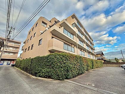 存在感のある外観が特徴のマンション。落ち着いたデザインとしっかりとした構造が安心感をもたらし、住まいとしての信頼性が感じられる美しい造りです。