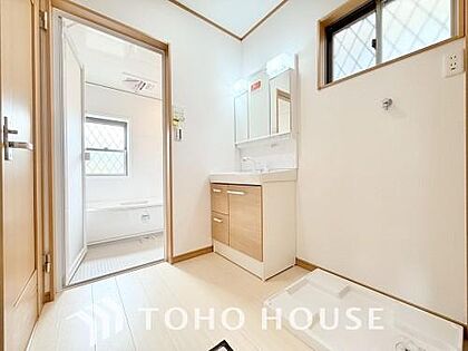 身だしなみのチェックがしやすい大きな鏡、下には収納がたっぷり。スッキリとした空間を演出いたします。