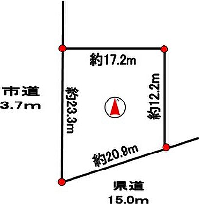 【接道】 角地 ( 公道 南東 15m ) ( 公道 西 3.7m ) 一部に地役権の設定あり |