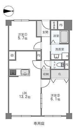 LDK(約13.2帖)|専用庭(ウッドデッキ)を望む開放感のある空間♪