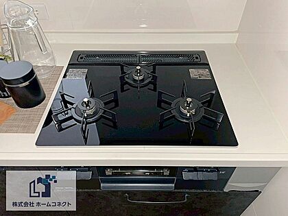 キッチン設備|三ツ口コンロを搭載し、効率の良い調理が可能です。