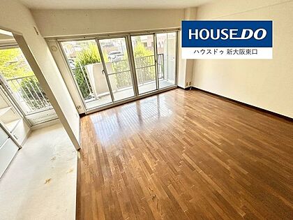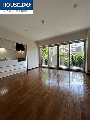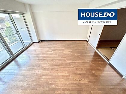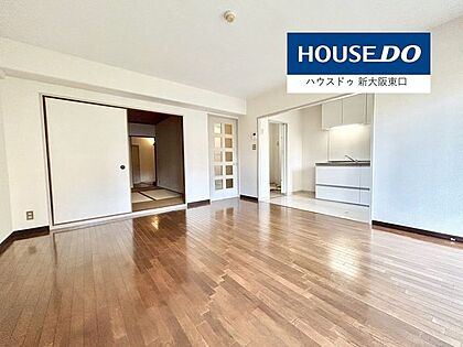 南東向きバルコニーで明るく、15帖以上のLDKです。奥は和室です。
