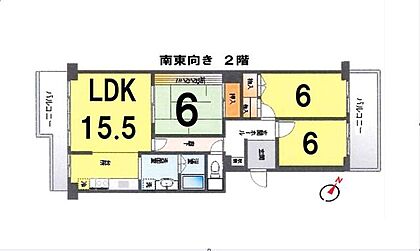 南東向きバルコニーで15帖以上のLDK 和室ありの3LDK