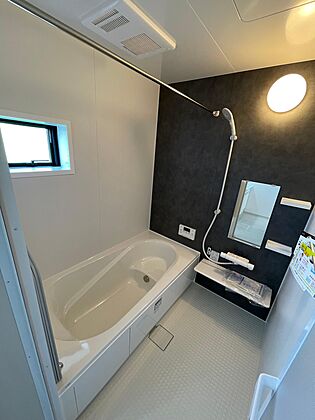 床の乾きやすい1坪タイプの浴槽♪足を伸ばしてゆっくり入浴♪浴室暖房機能付きで冬でもあたたかいです。また乾燥機能で洗濯物干しコーナーとしての用途も可能♪