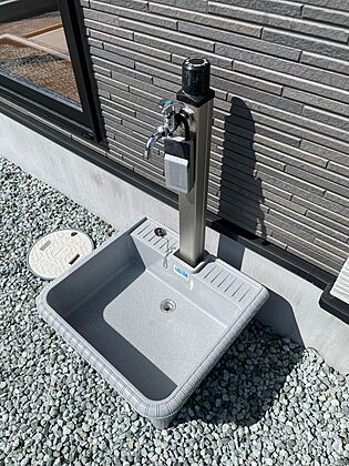 外には標準で立水栓が付きます♪洗車も花壇の水やりも可能♪