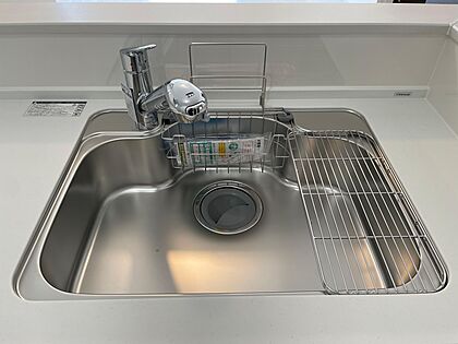 たっぷり食器が入るシステムキッチンのシンク♪シングルレバーなので片手で吐水できます♪蛇口部のヘッドホースが伸びて隅々まで行き渡ります♪浄水カートリッジ対応の水栓です♪