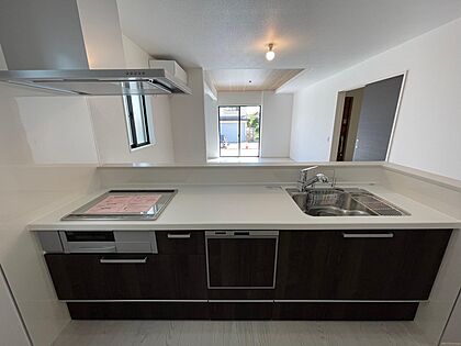 対面キッチンでお子さまの様子を見ながらお料理ができて安心♪ワイドなキッチン台は広々でとても快適♪お子さんと一緒に料理も楽しめます♪標準でビルトイン食器洗浄乾燥機付き♪