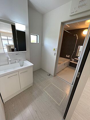 ゆったりとした洗面脱衣所♪はしゃぐお子さまとの着替えも問題なしです♪ドラム式洗濯機も余裕で設置できる広さです♪