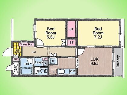 間取り 2LDK 専有面積 54.17m2(壁芯)
