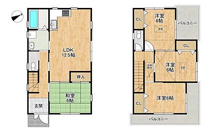 4LDK+ガレージ2台(車種による)の使いやすい間取です。天井収納ございます。