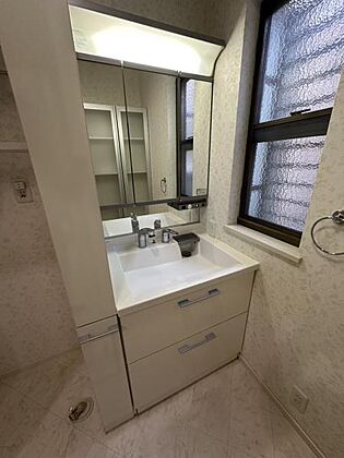 洗面所にも収納棚があり、便利で使い勝手もよいです。