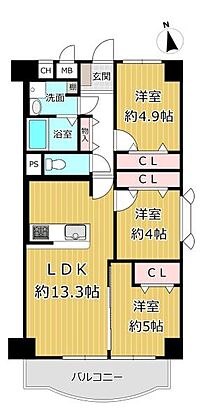 | 間取り | 3LDK | 専有面積 | 60.36m2(壁芯) |