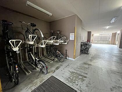 〜駐輪場〜 屋内で雨に濡れず劣化防止になります。