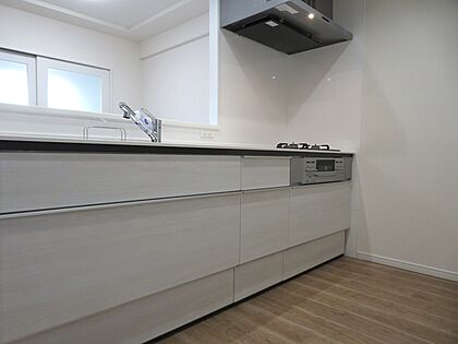 カウンターキッチン(L2400)新規交換 (オールスライド収納、3口ガスコンロ 等)