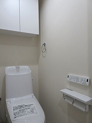 トイレ新規交換(強力洗浄の超節水トイレ) 2連ペーパーホルダー、吊戸棚付