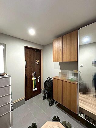 ベビーカーや趣味のお荷物を置いても十分な広さ!ポケットキーを採用しているため、手がふさがっていてもスムーズに入れます!室内(2025年9月)撮影
