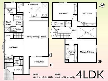 *間取図*【4LDK】機能的に設計された間取りで、快適生活♪収納力豊富なウォークインクローゼットがあり荷物もスッキリ片付きます♪後片付けもラクになる食器洗浄乾燥機付きです♪