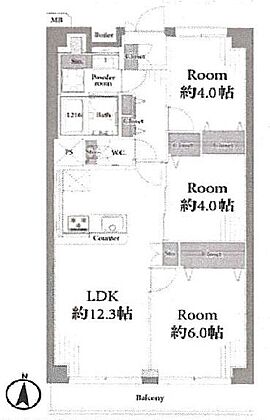 | 間取り | 3LDK | 専有面積 | 61.60m2(壁芯) |