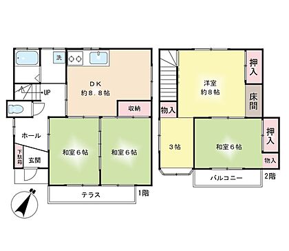 間取り全室6帖以上ございます。南東向きで陽当たり良好。