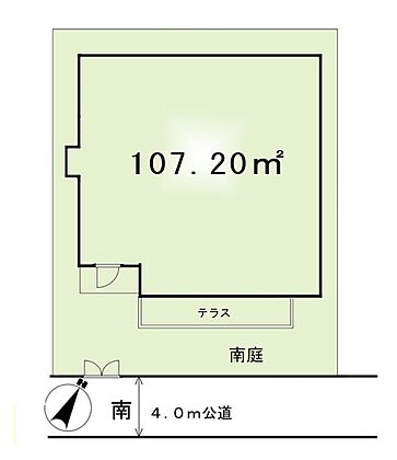 区画図:温かい陽ざしを浴びることが出来る、南東道路に面した区画です。