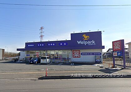 周辺環境:ドラッグストア 450m ウェルパーク薬局川越南大塚東店(徒歩6分。お薬だけでなく日用品もお買い求めいただけます。)