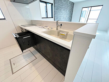 ☆大型のシステムキッチン☆対面式ですので家族と会話しながら楽しくクッキング!!