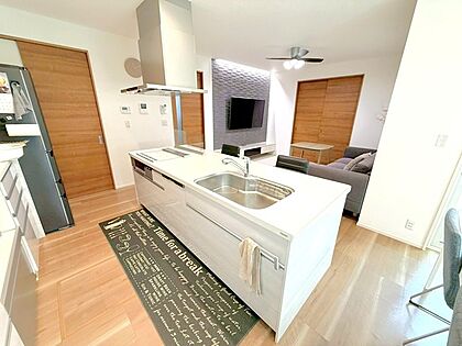 〜憧れのアイランドキッチン〜 ・デザイン性の高い人気のアイランドキッチンを採用。 ・両方向からキッチンにアクセスできるので複数人での作業も楽々。ぜひ現地でその魅力をご体感くださいませ。