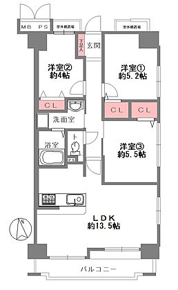 | 間取り | 3LDK | 専有面積 | 65.18m2(壁芯) |