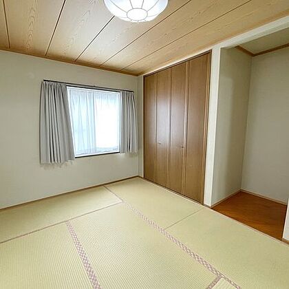 1F6帖の和室で、収納が付いております。南向きの窓からの陽光が温かく、ゆったりとお過ごし頂けます。